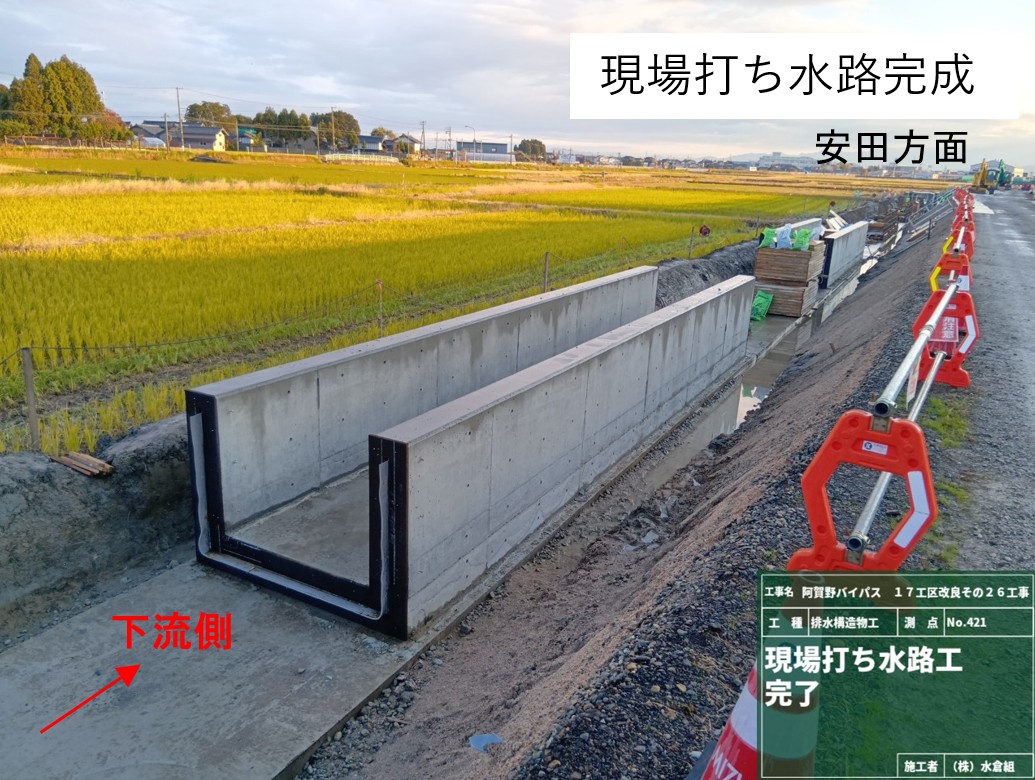 側道でバイパス盛土の防草コンクリートを予定しています。