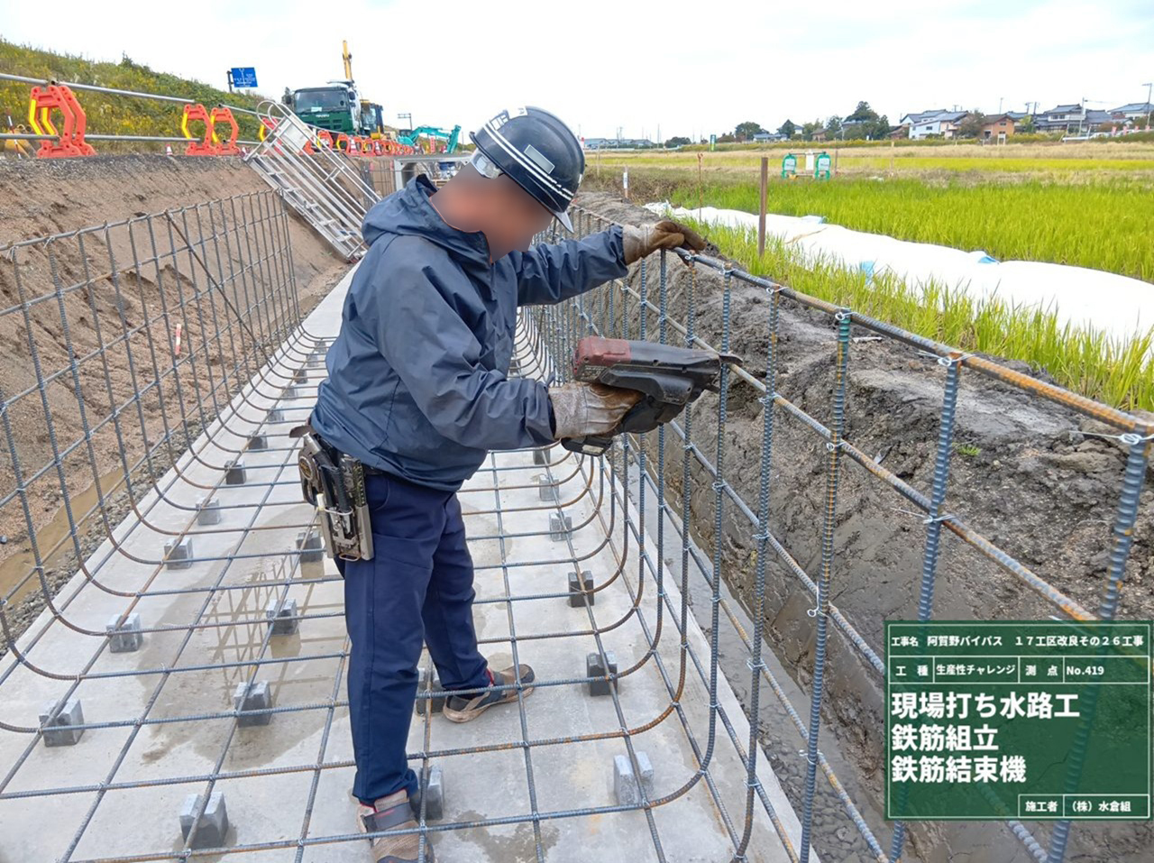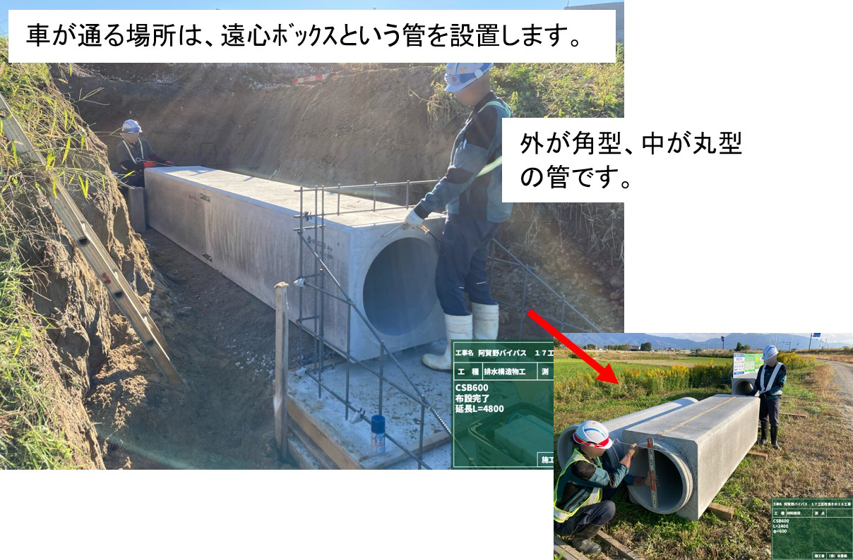 ①10月27日から作業をおこなっています。作業期間中終日側道を通行止めします。農道の迂回にご協力お願いします。