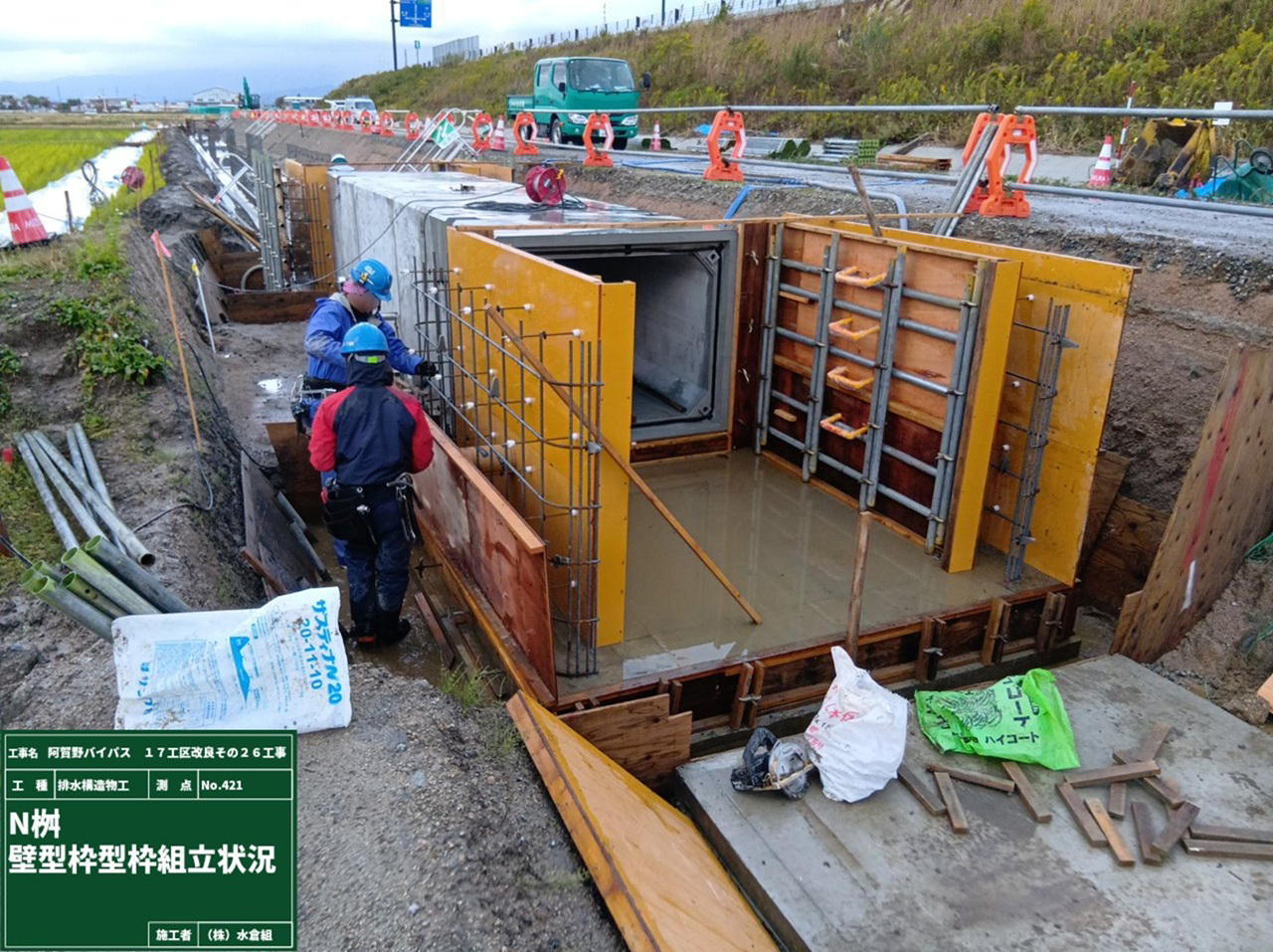 5月19日から側道でバイパス盛土の防草コンクリートを予定しています。