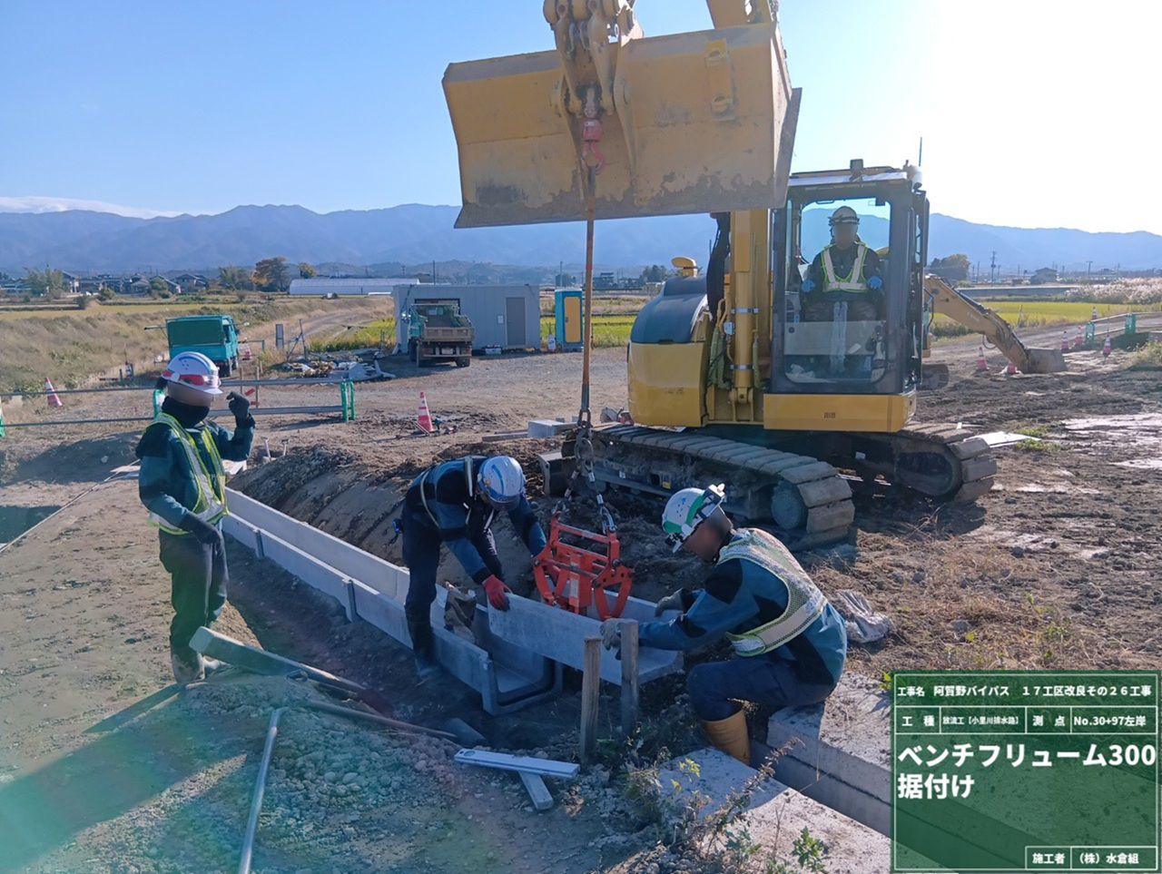 現在の用水路のとりこわしが完了して、あたらしい水路をつくります。