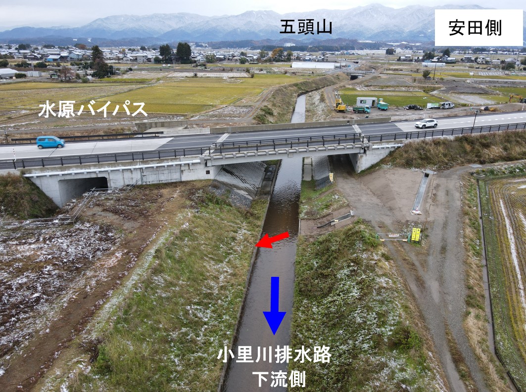 この度、阿賀野市田山~下黒瀬地区において、東股用水路の改築および窪川原交差点の