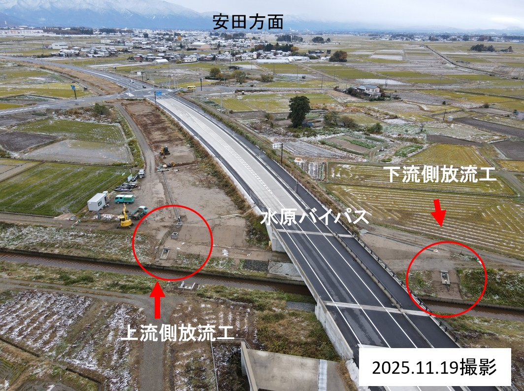今回の開通により、国道49号水原バイパス全線の延長8.1kmが暫定2車線で繋がります。