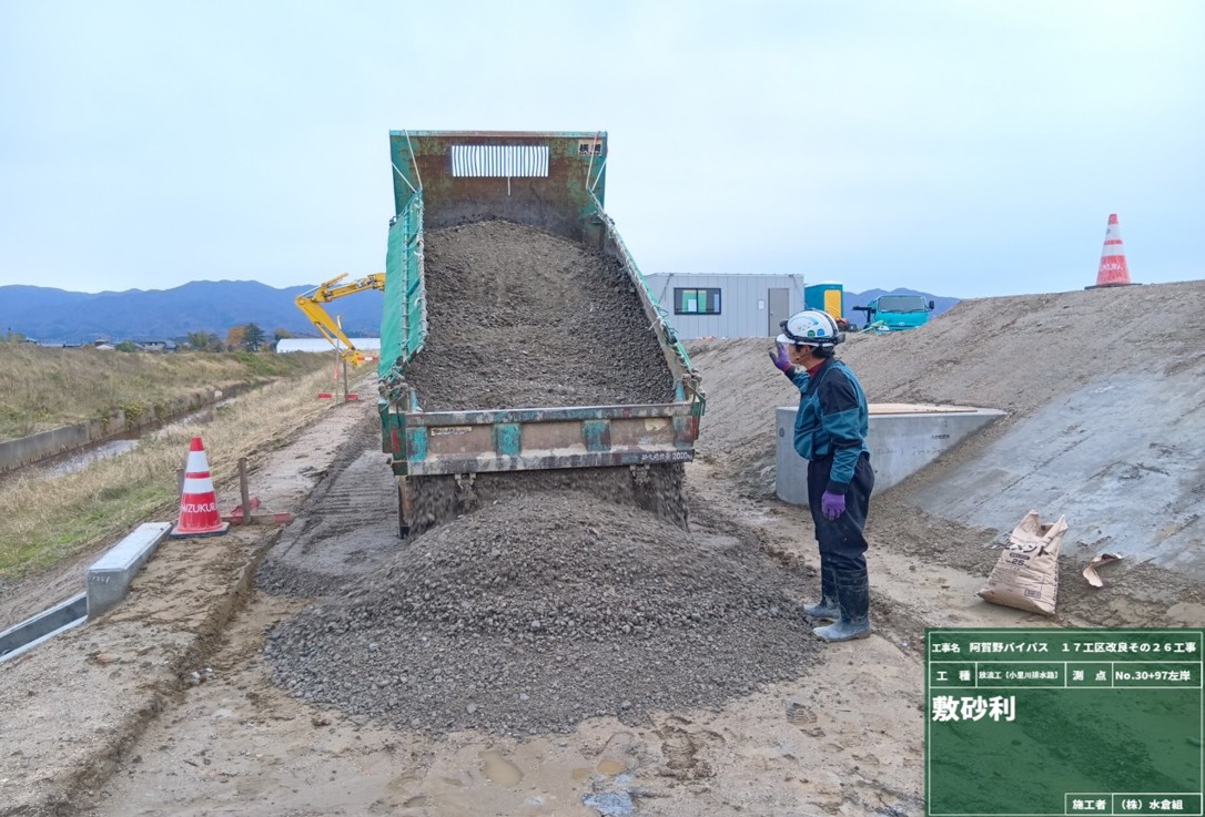 ☐12月10日ごろから1週間程度、道路を埋めるための良質土を横雲バイパスから大型車で運搬します。