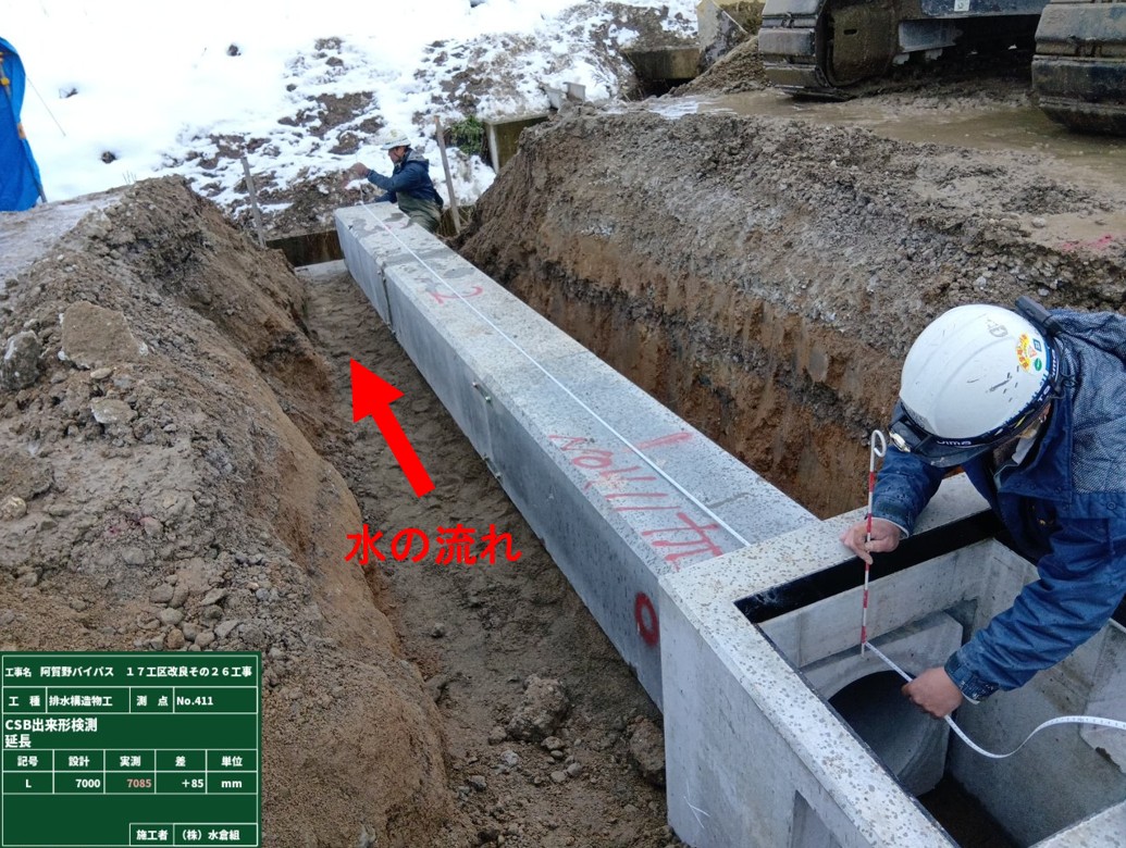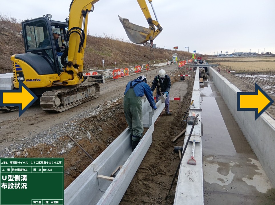 ⑤埋めたとこから道路側溝を設置。