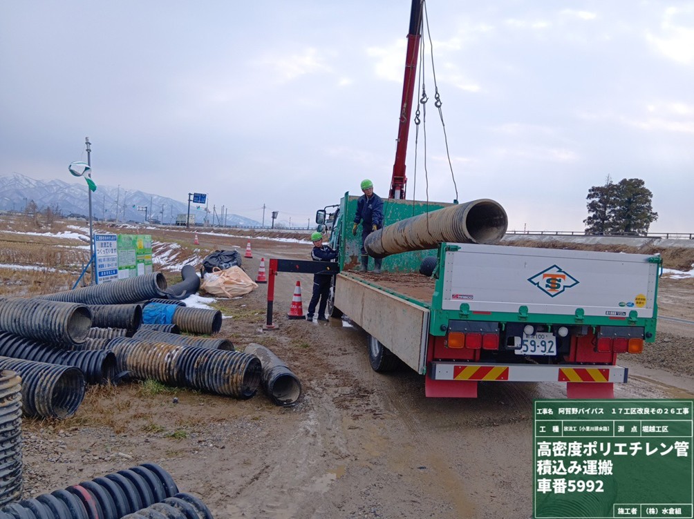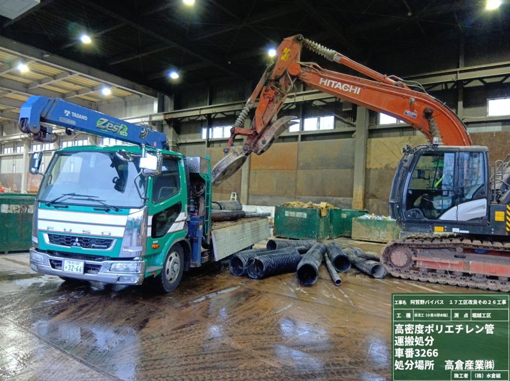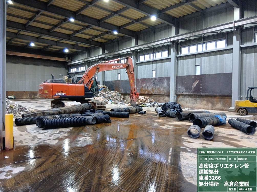 ○撤去した仮排水管を堀越から新潟市西区の中間処理施設まで持っていって作業完了しました。