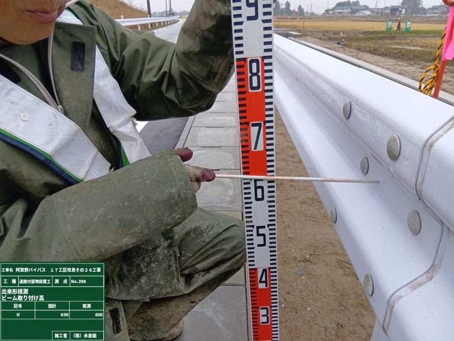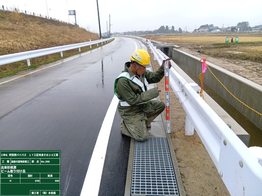 ○国道の路側にバリケードを設置。大型標識をあたらしい位置に移動しました。