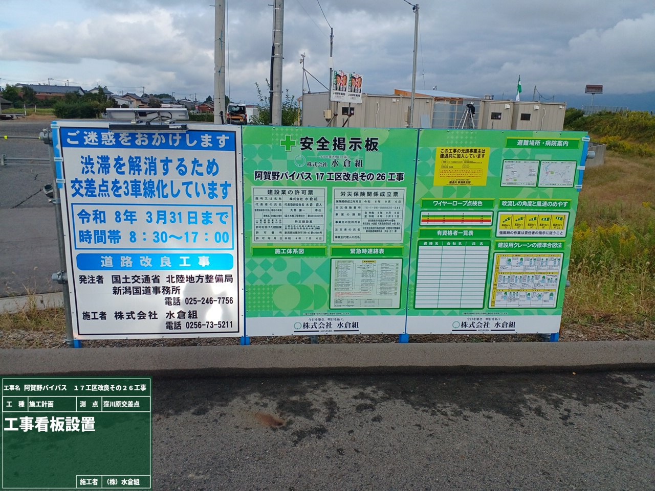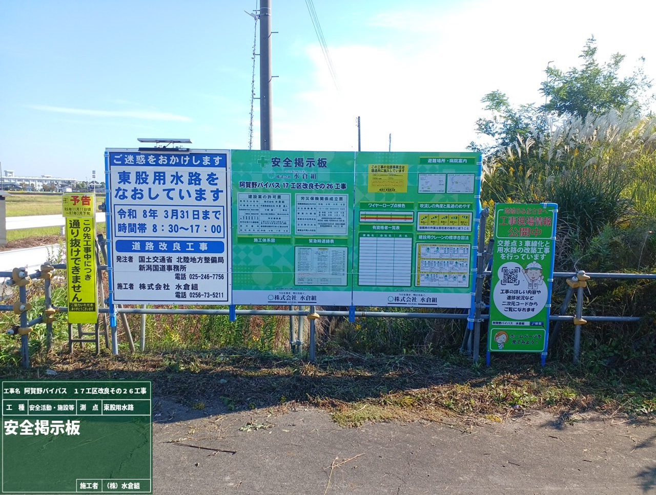 工事場所の起点側[東股用水路工区]と終点側[窪川原交差点工区]に看板を設置しました。