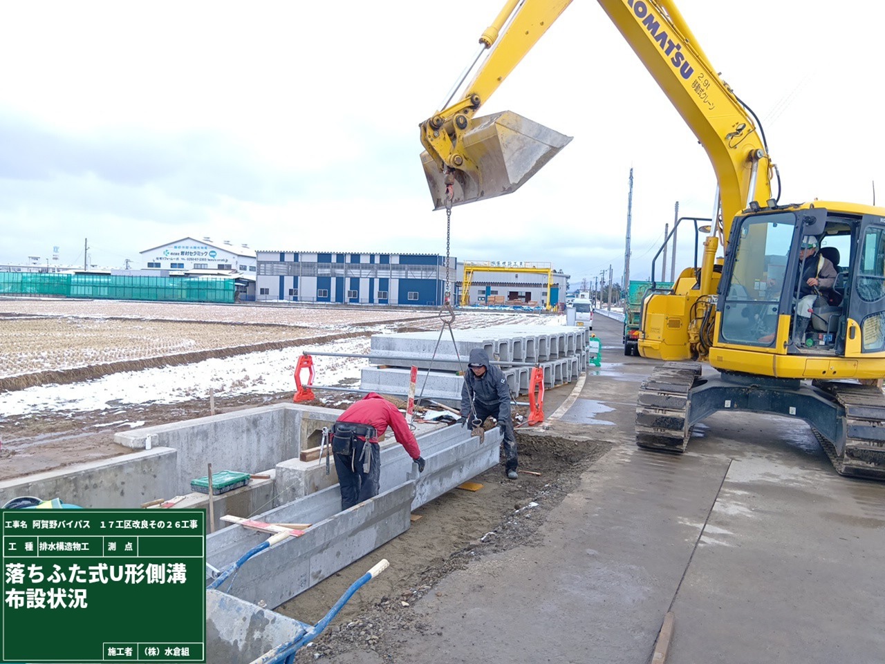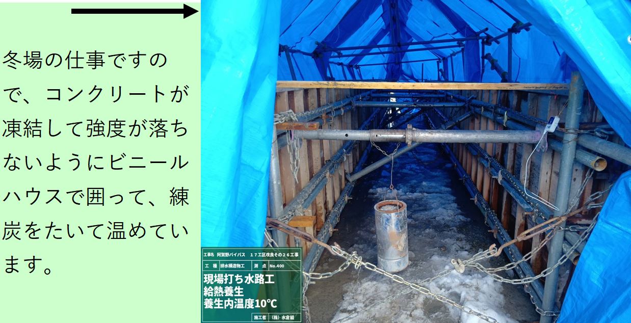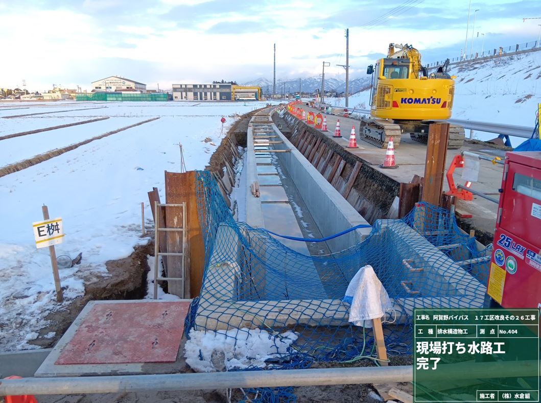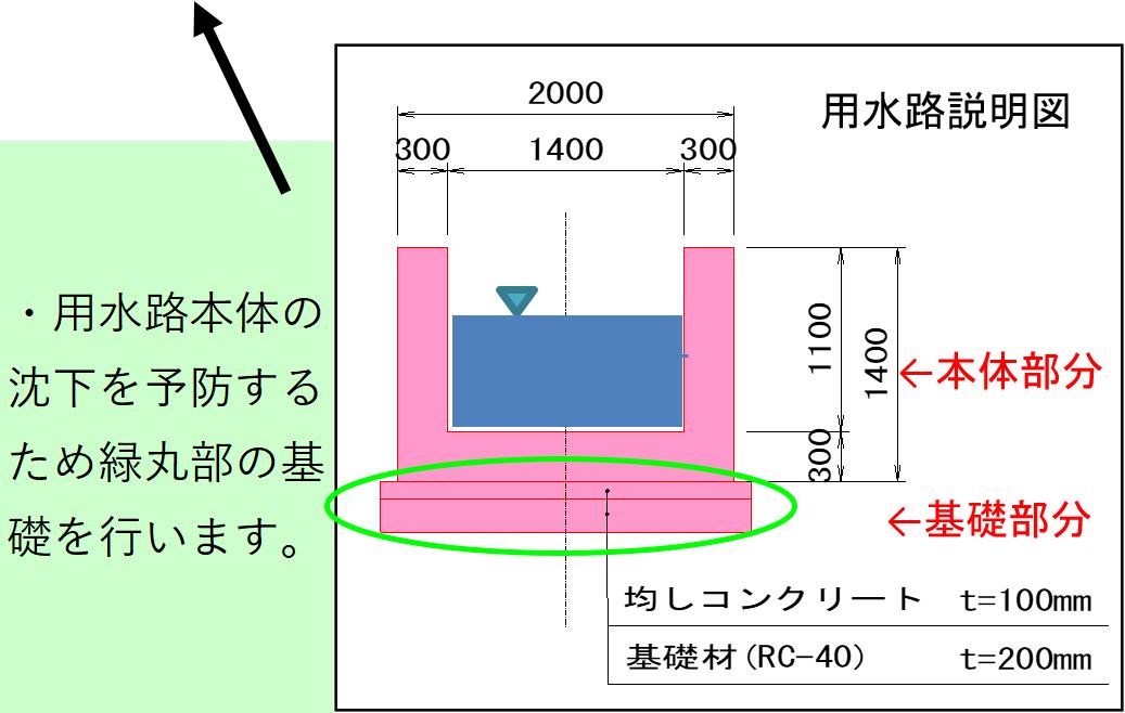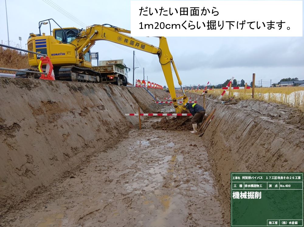 1月8日ごろから次の場所(場所打ち水路②)で現在の用水路のとりこわし約50mを予定しています。