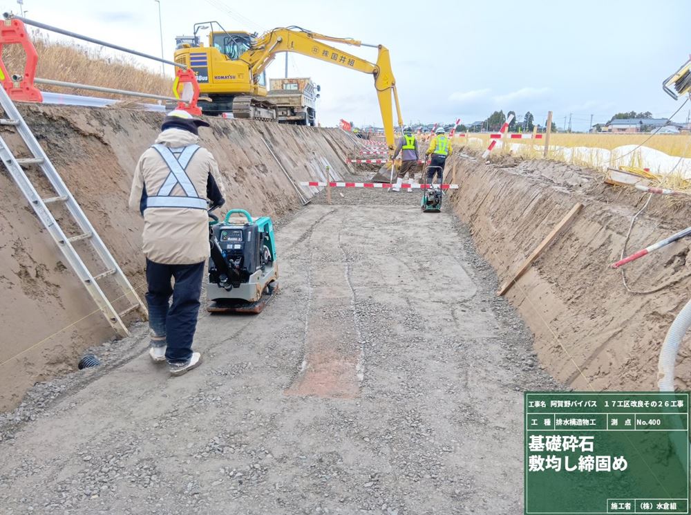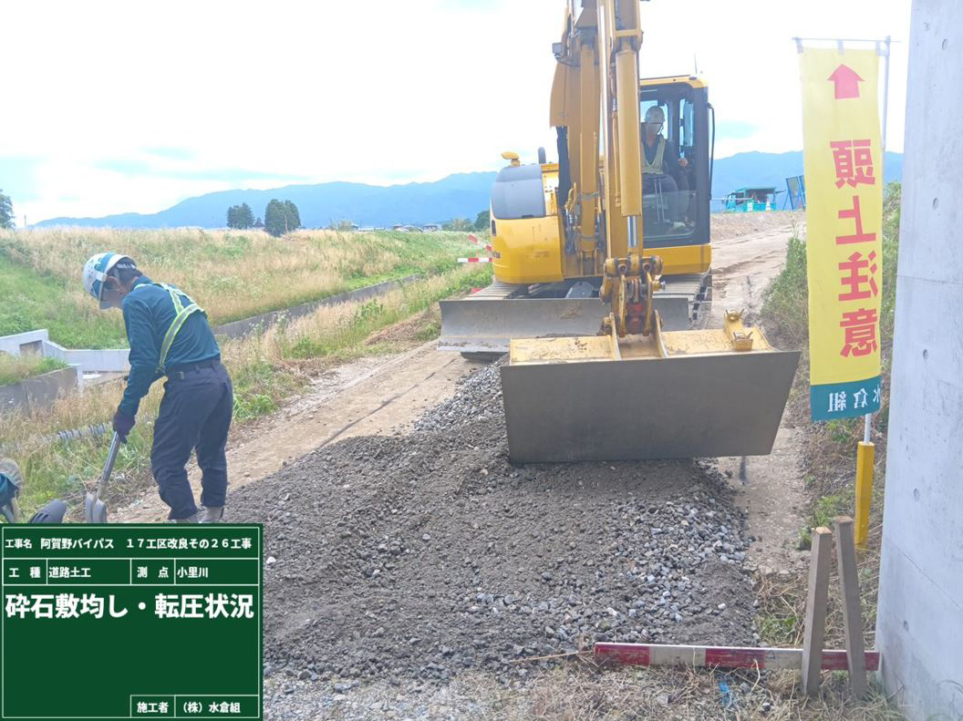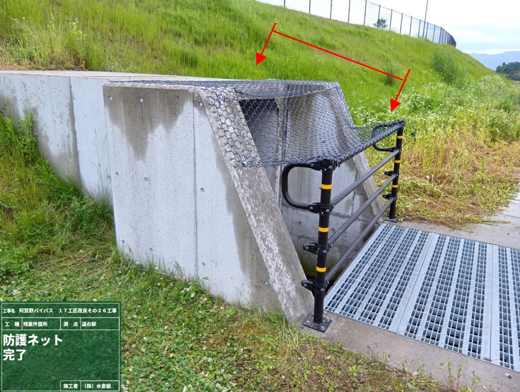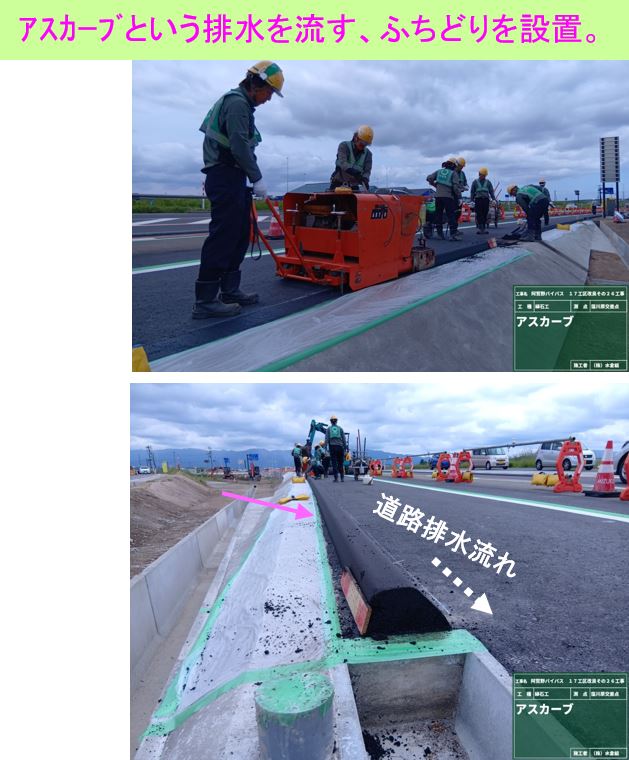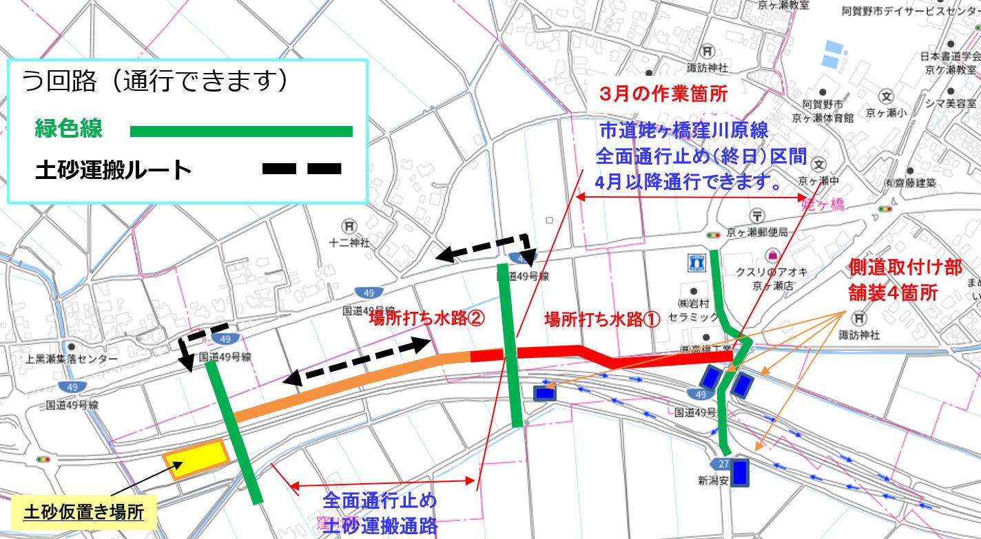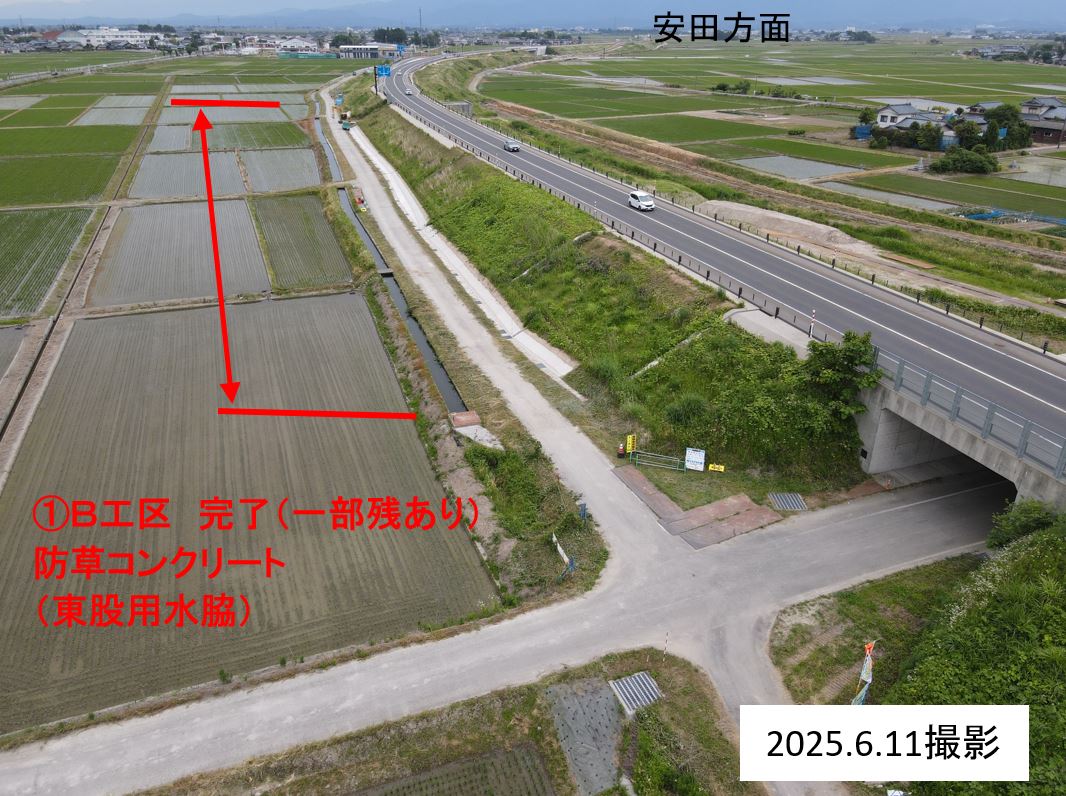 ・バイパス下の通路(管理用通路)については、敷砂利が固くなるまで通行止めとします。農道の迂回にご協力お願いします。