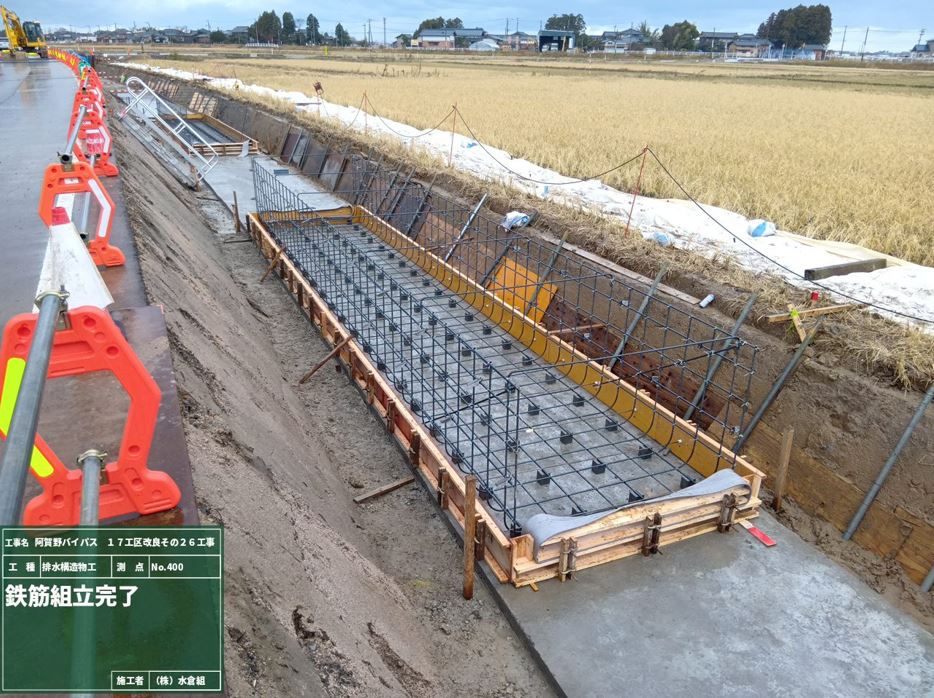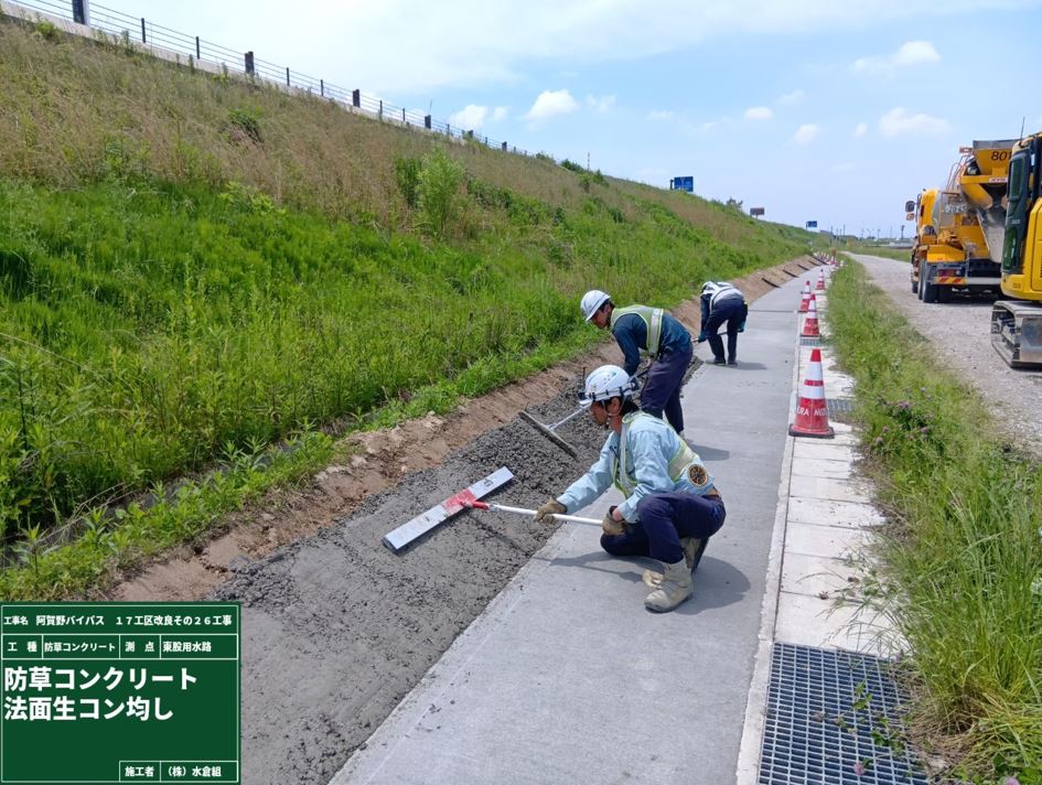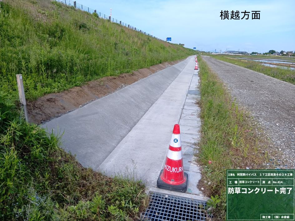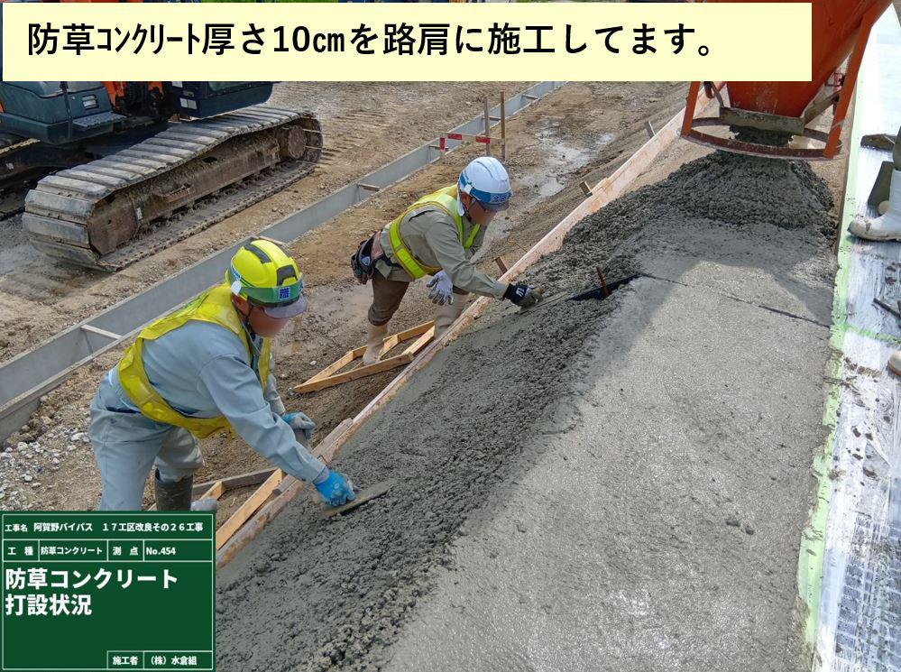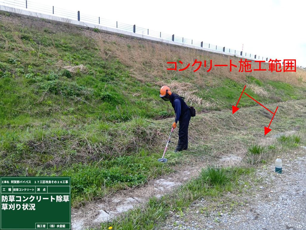 側道でバイパス盛土の防草コンクリートを予定しています。