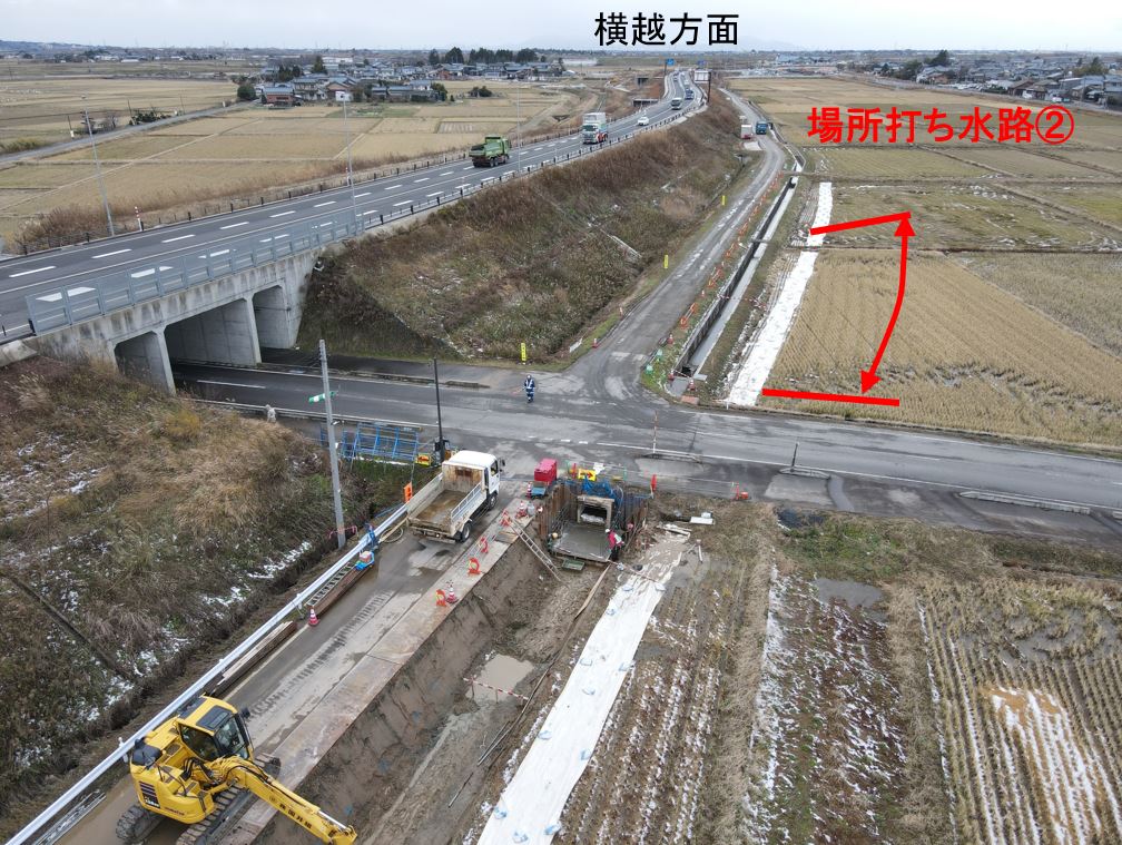 この度、阿賀野市田山~下黒瀬地区において、東股用水路の改築および窪川原交差点の