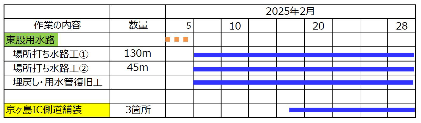 ☐3月3日~5日に京ヶ島インタ-脇の取付道路の舗装作業を行います。