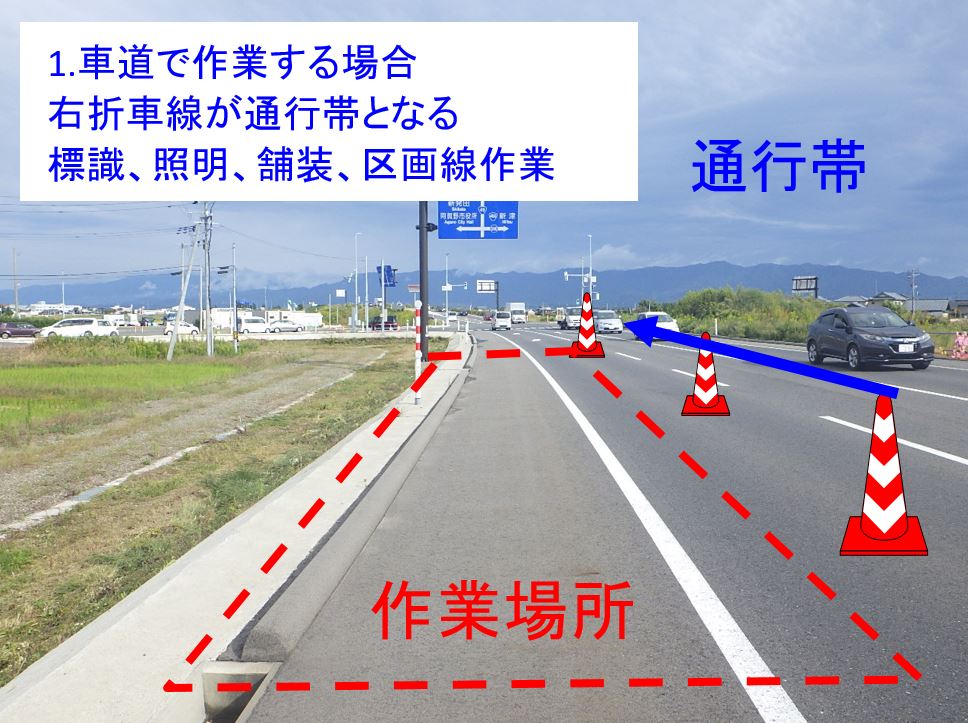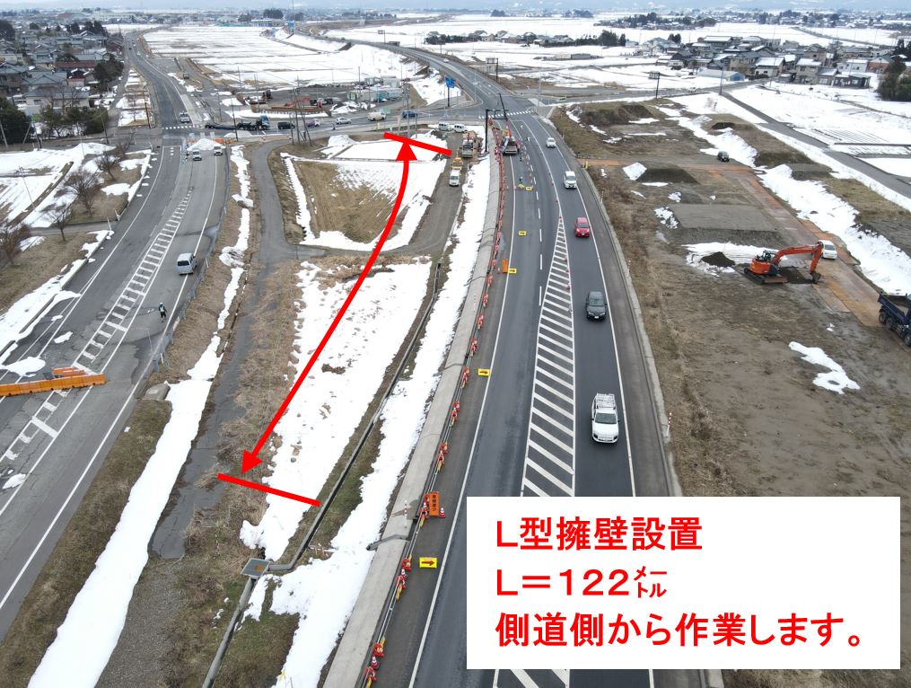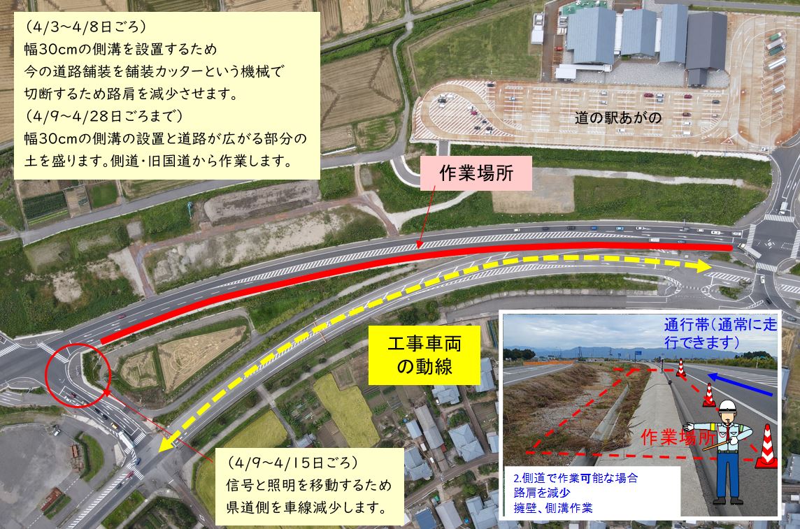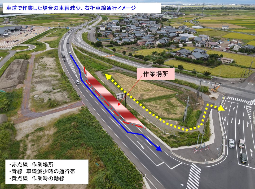 3車線化(新潟市~水原方向への左車線設置)の工事をおこないます。