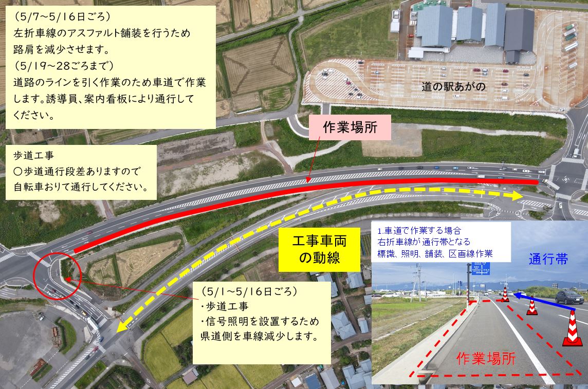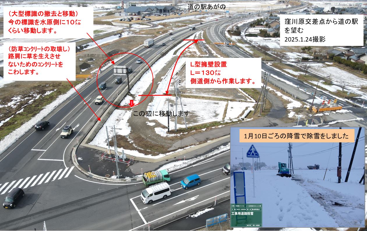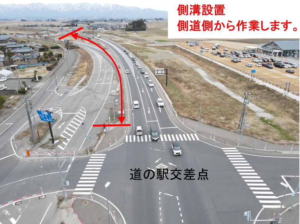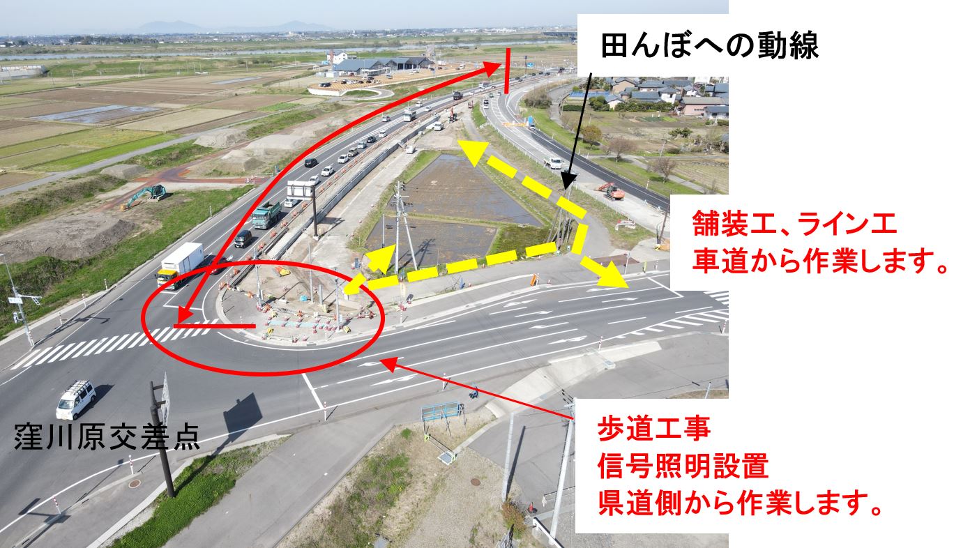 3車線化(新潟市~水原方向への左車線設置)の工事をおこないます。