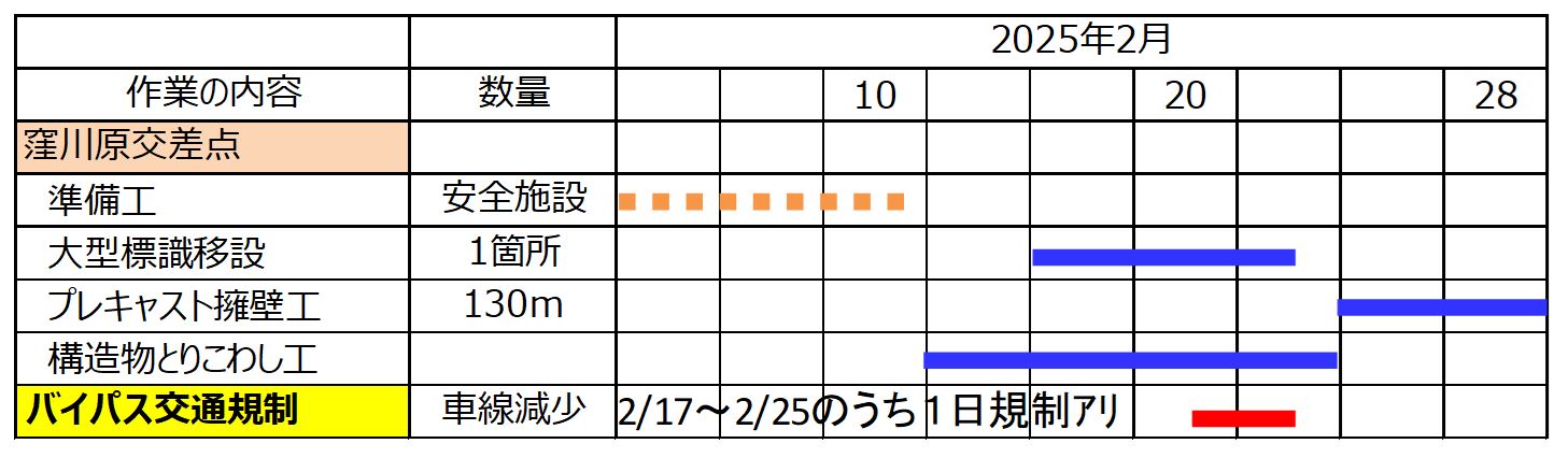 ○2月10日ごろから窪川原交差点の作業を開始しますのでおしらせします。