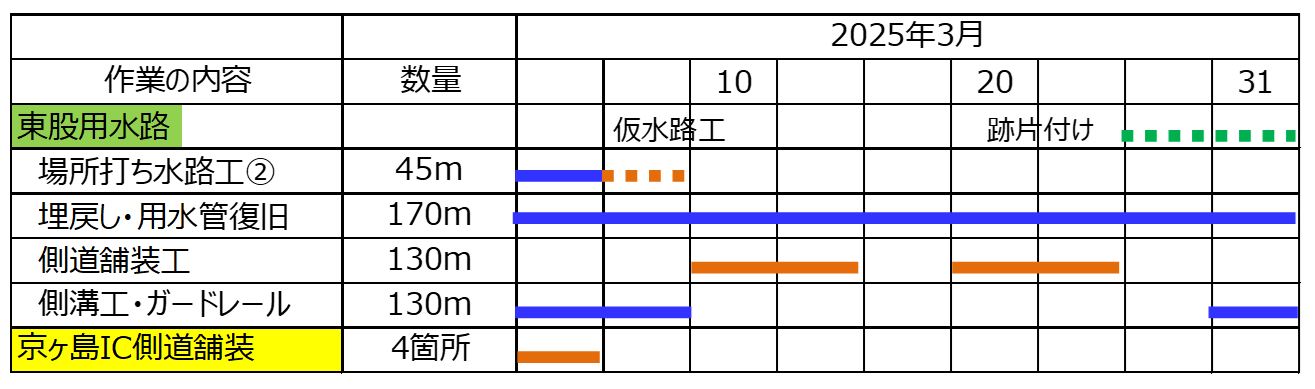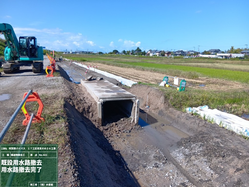 ①9/3~9/13埋戻し用の土砂を大型車で運搬予定です。土砂運搬終わり次第、旧用水路の撤去をおこないます。