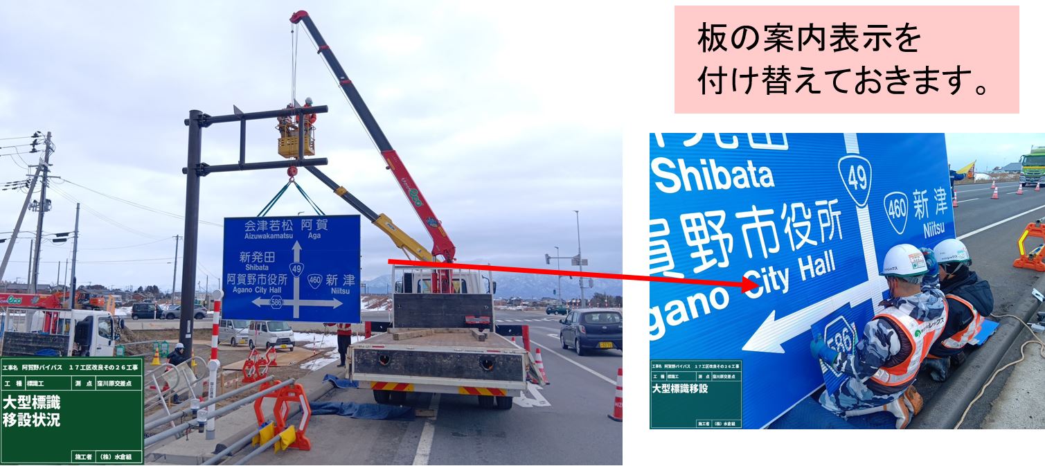 ☐2月17日~2月25日のうち1日間に大型標識を移設するため国道車線減少規制します。