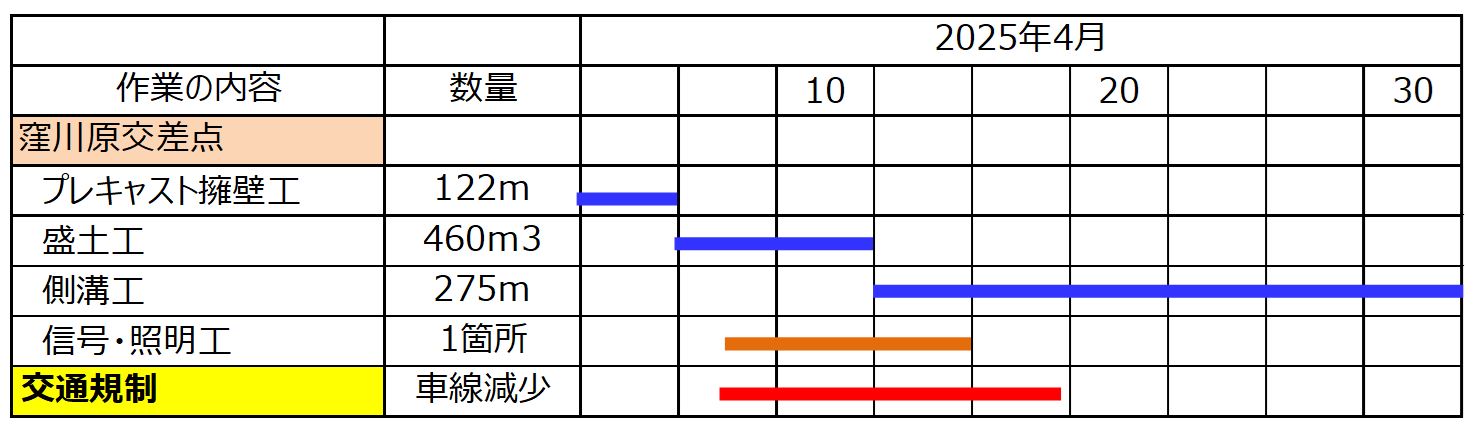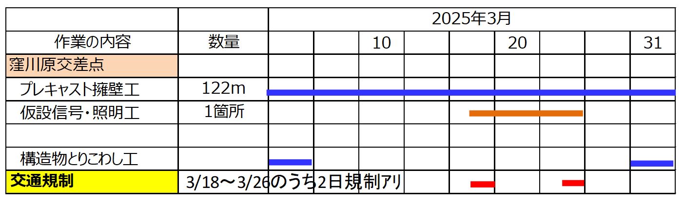 ○窪川原交差点工区の作業位置と交通規制説明図(4/3~4/18ごろまで)