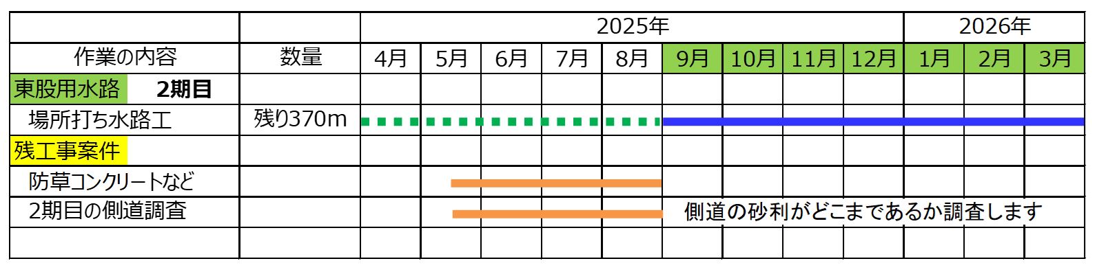 防草コンクリートが完了して2期目、9月からの用水路工事と堀越地区の準備をおこないます。