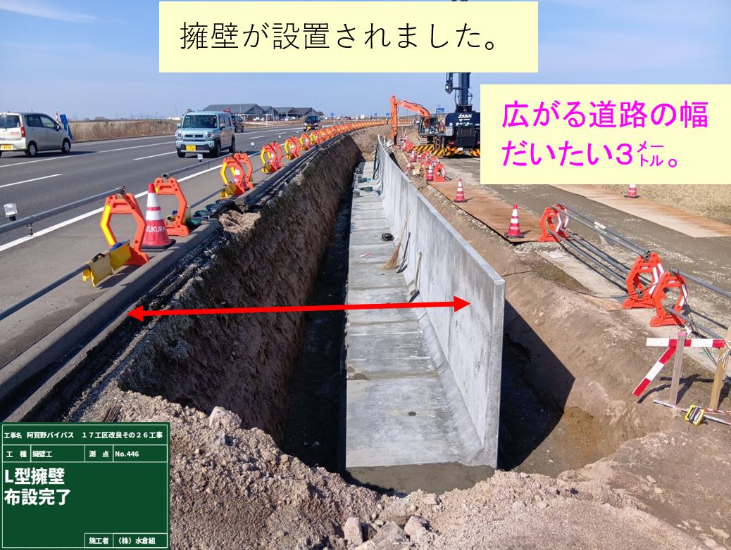 5月19日から側道でバイパス盛土の防草コンクリートを予定しています。