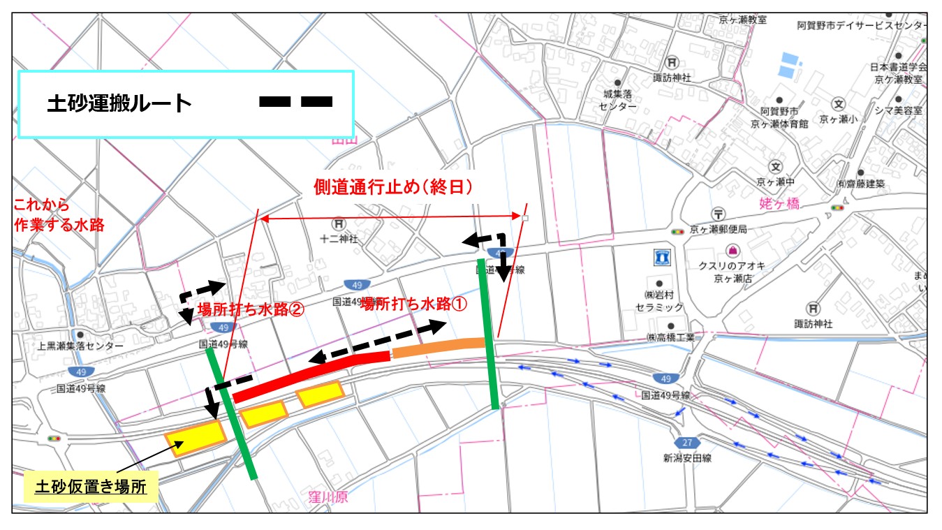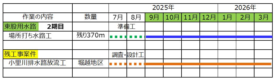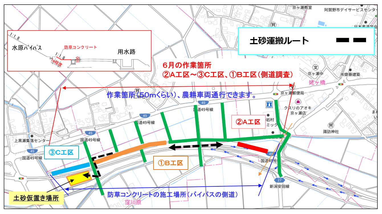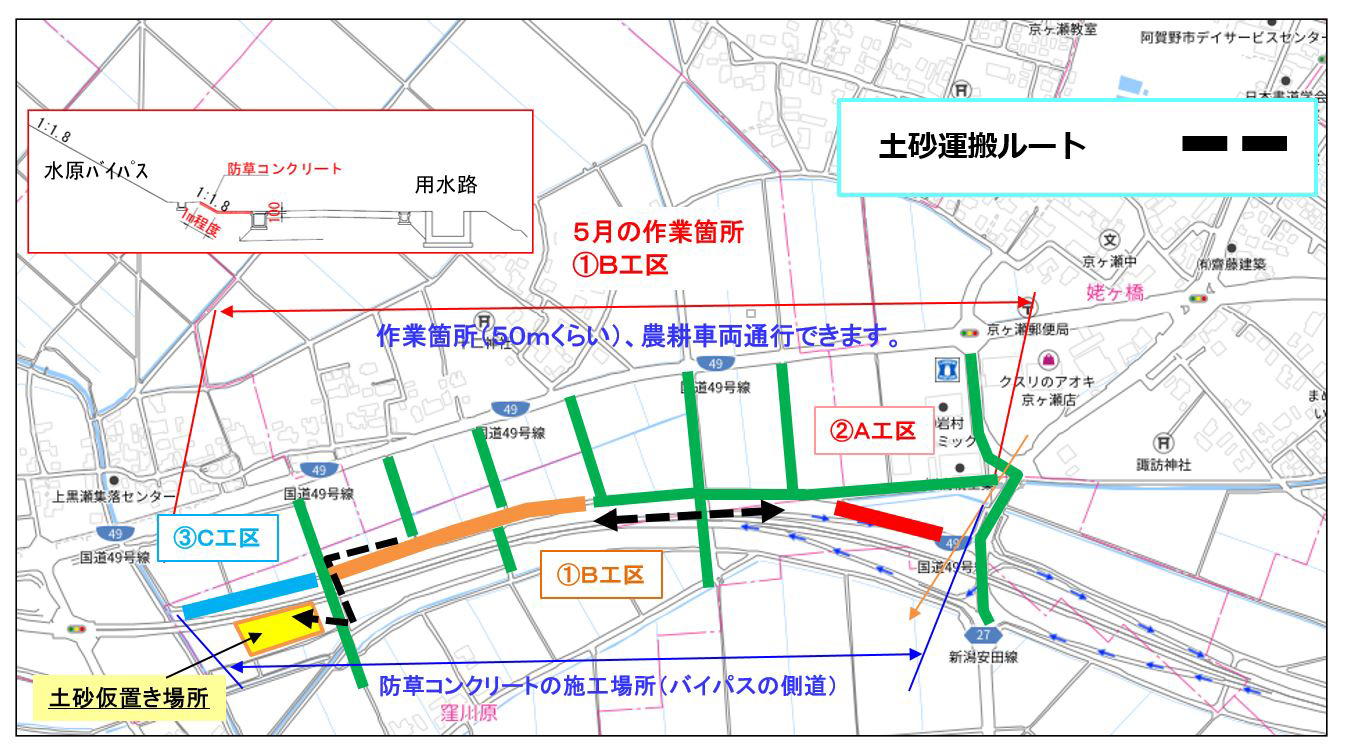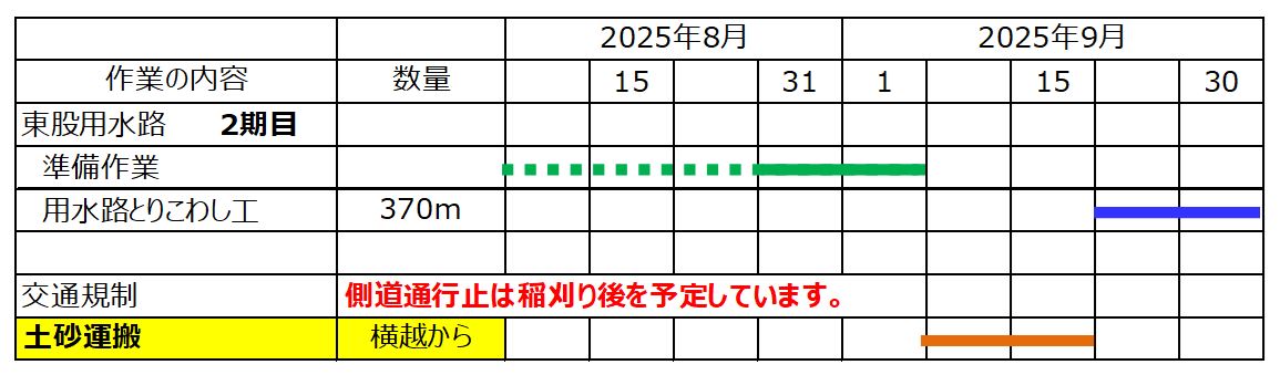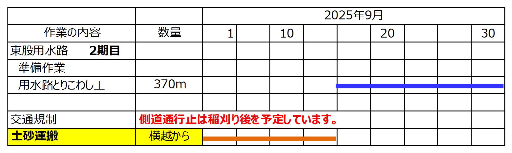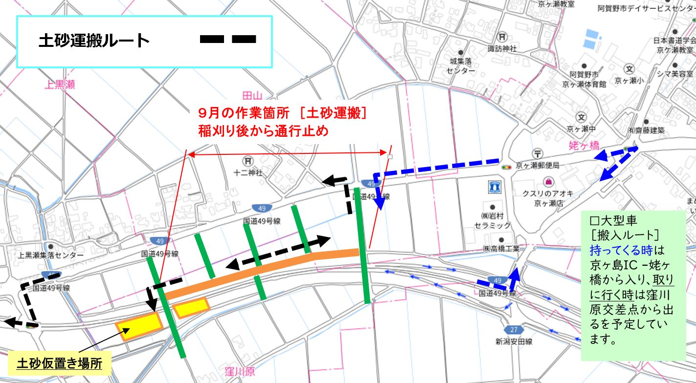 9月3日ごろから、横越~土砂運搬を、9月16日ごろから用水路とりこわしを予定しています。