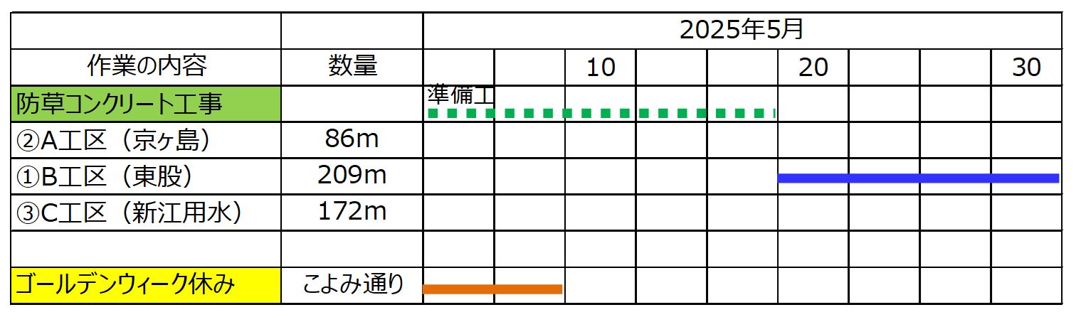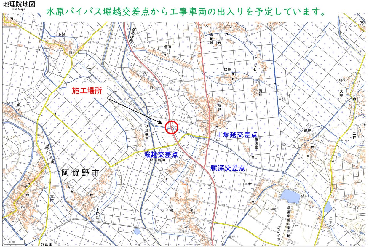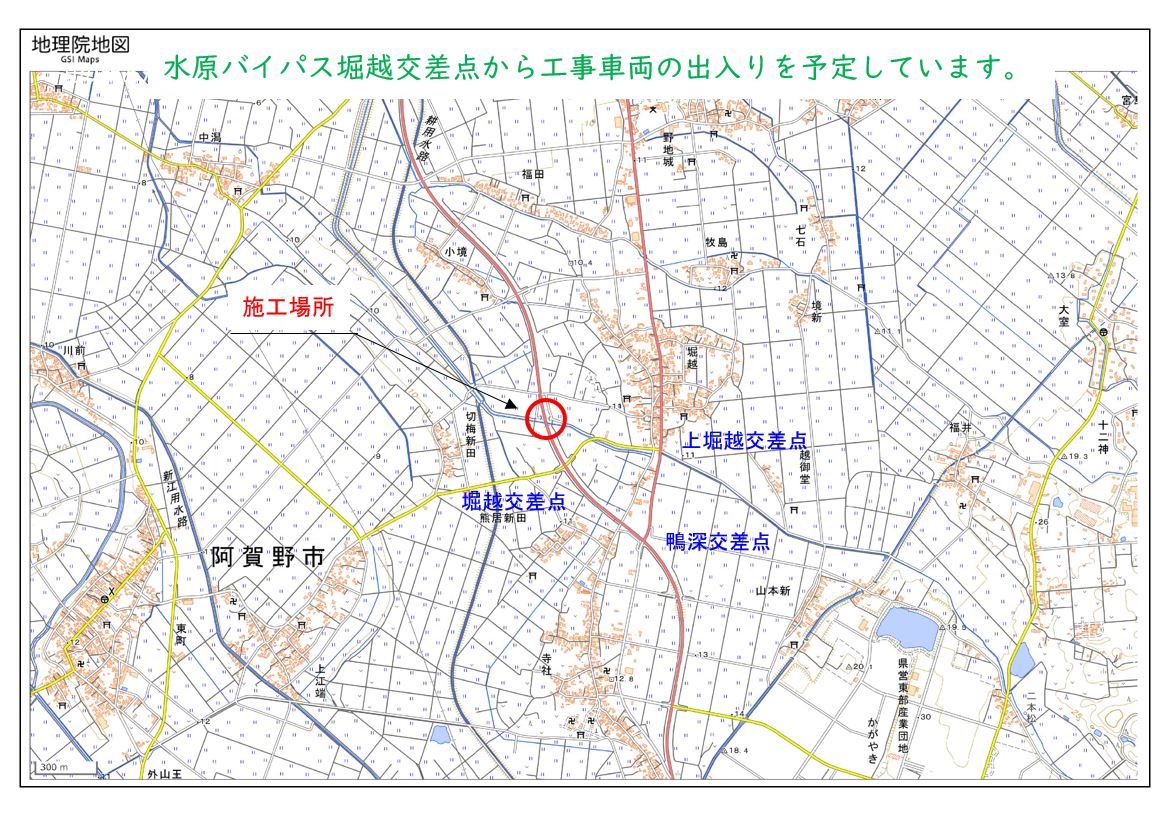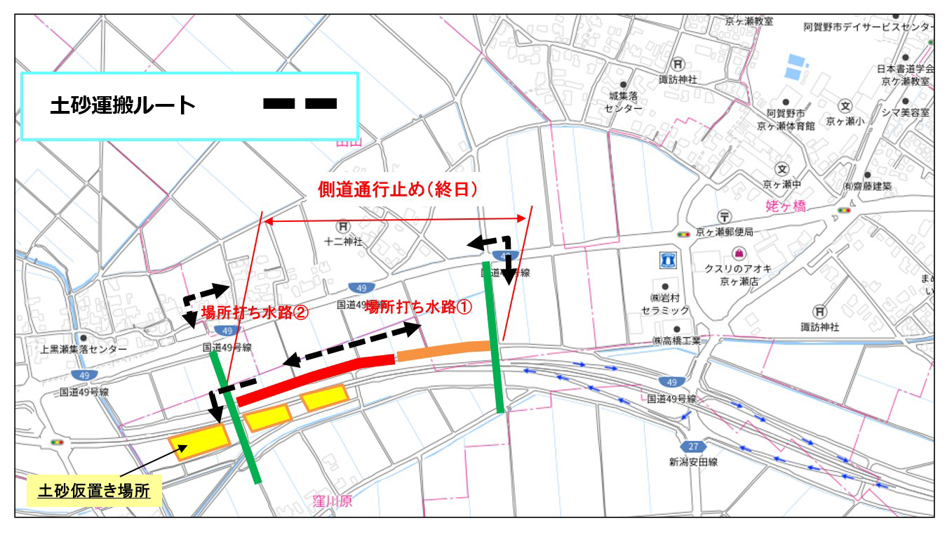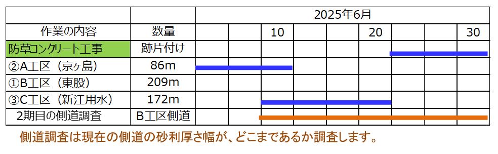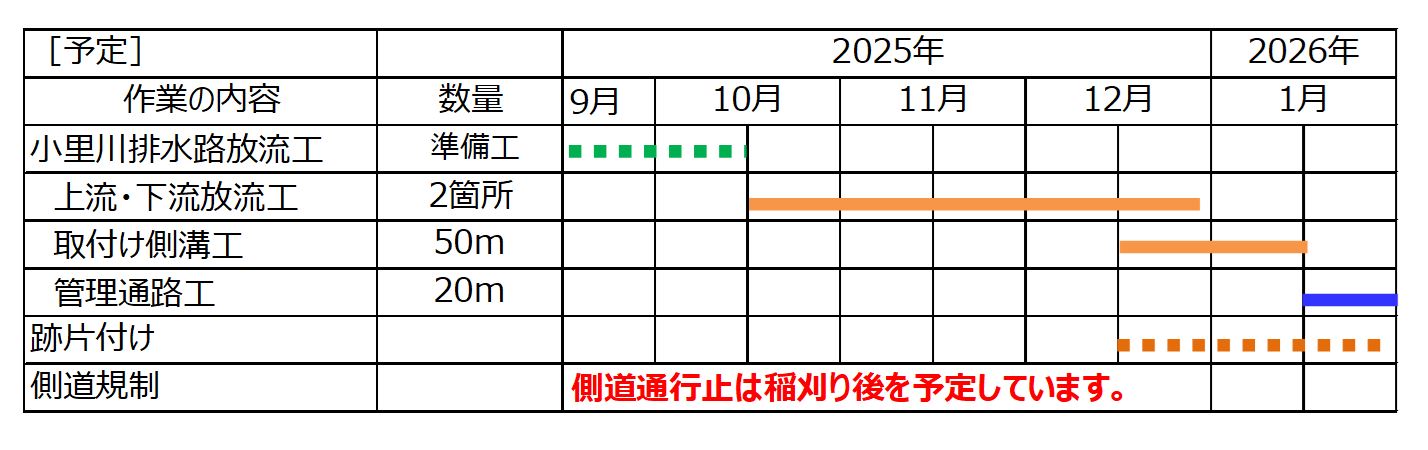 9月3日ごろから、横越~土砂運搬を、9月16日ごろから用水路とりこわしを予定しています。