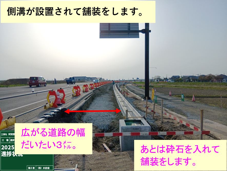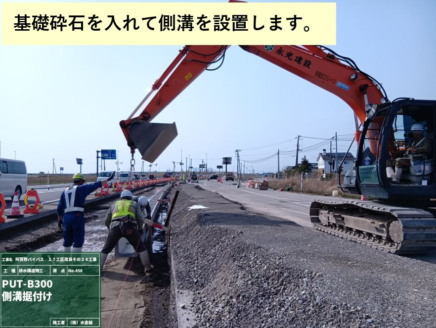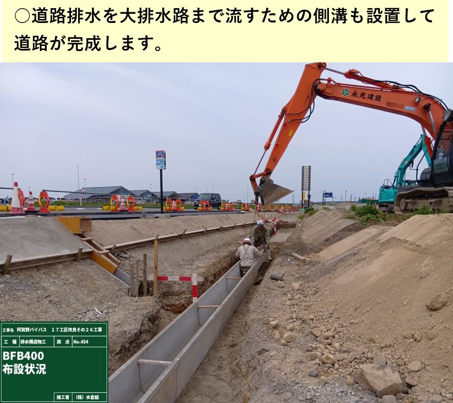 ⑤埋めたとこから道路側溝を設置。
