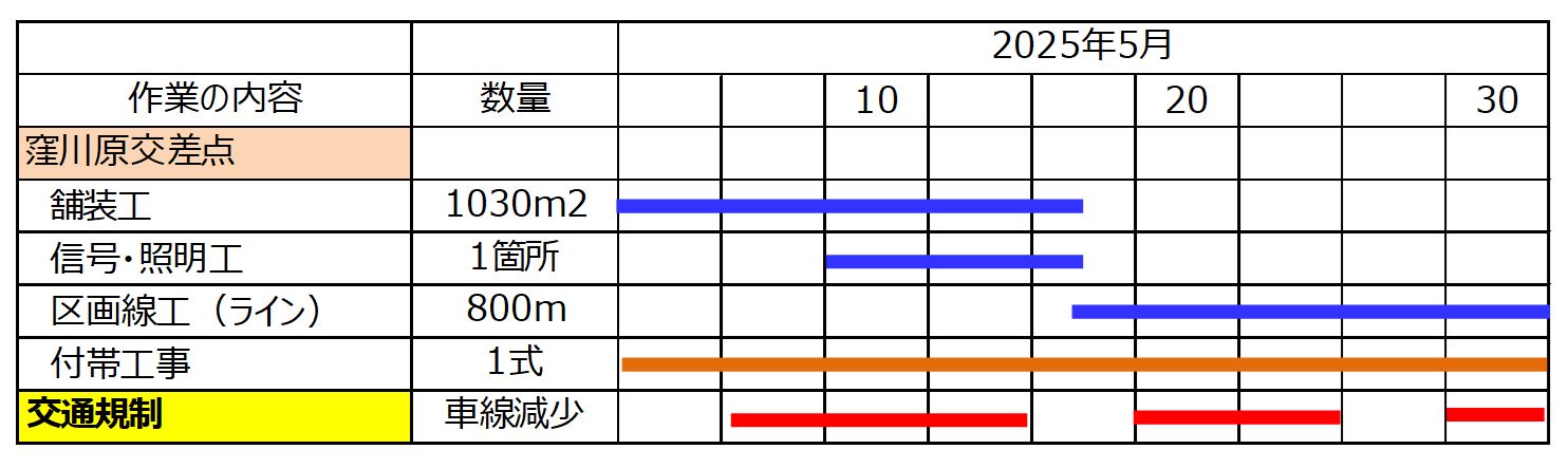 ○窪川原交差点工区の作業位置と交通規制説明図(5/7~5/28ごろまで)