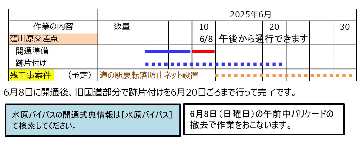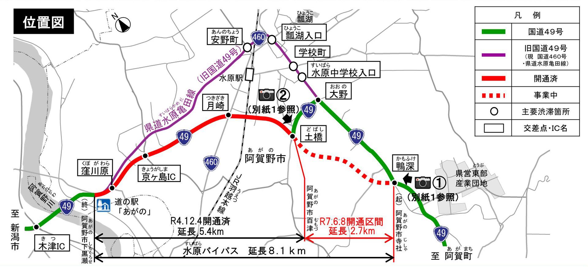 今回の開通により、国道49号水原バイパス全線の延長8.1kmが暫定2車線で繋がります。