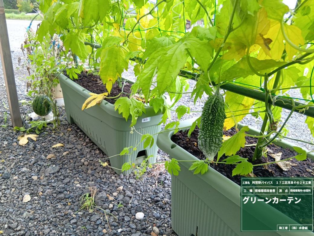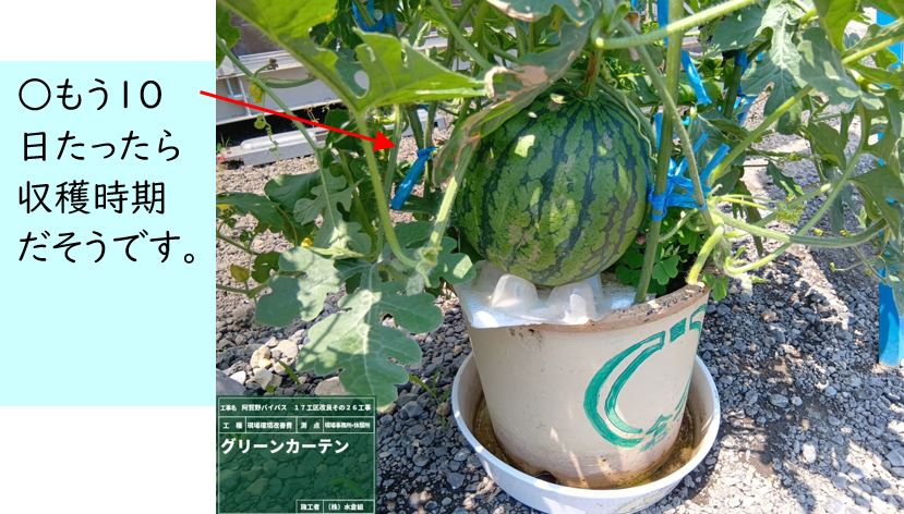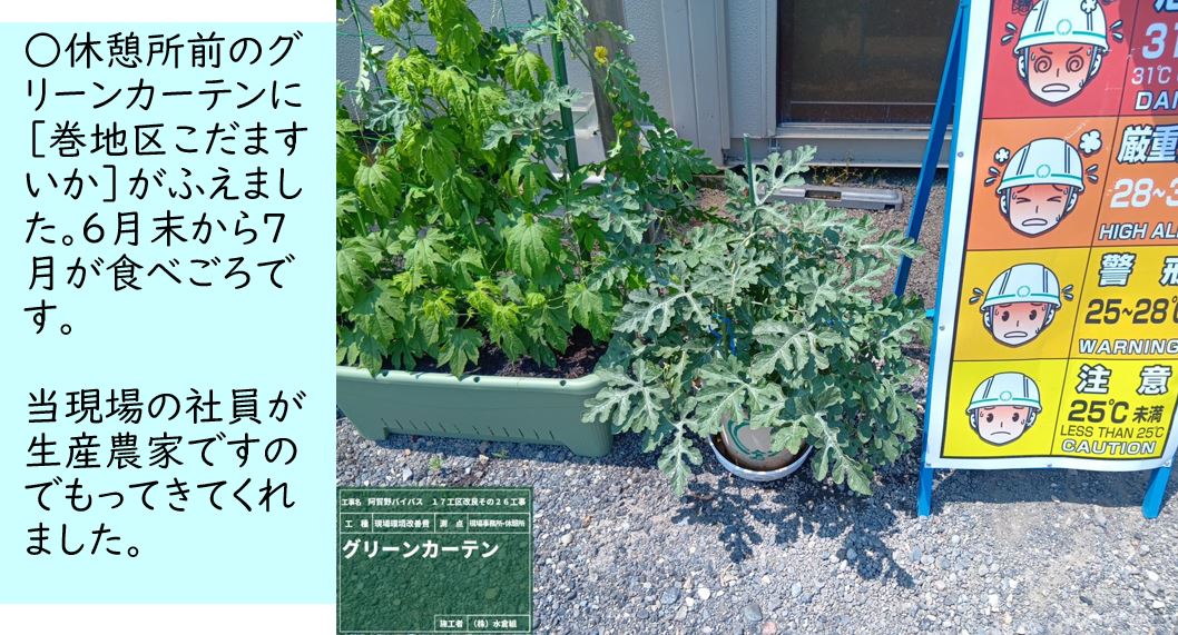 ○7月に入り暑い日がつづき雨がきませんが、グリーンカーテンのゴーヤは元気です。