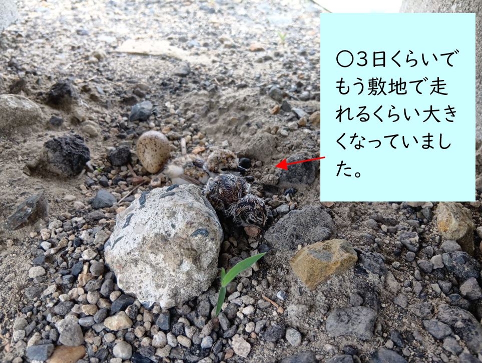 ○現場事務所の敷地でまた"ひな"が生まれました。おそらくですがチドリだと思います。