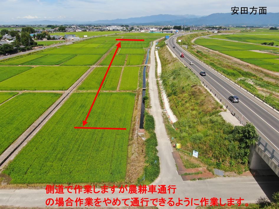 ○9月から稲刈りまでの作業方法(側道を通行止めして作業にするのは稲刈り後)