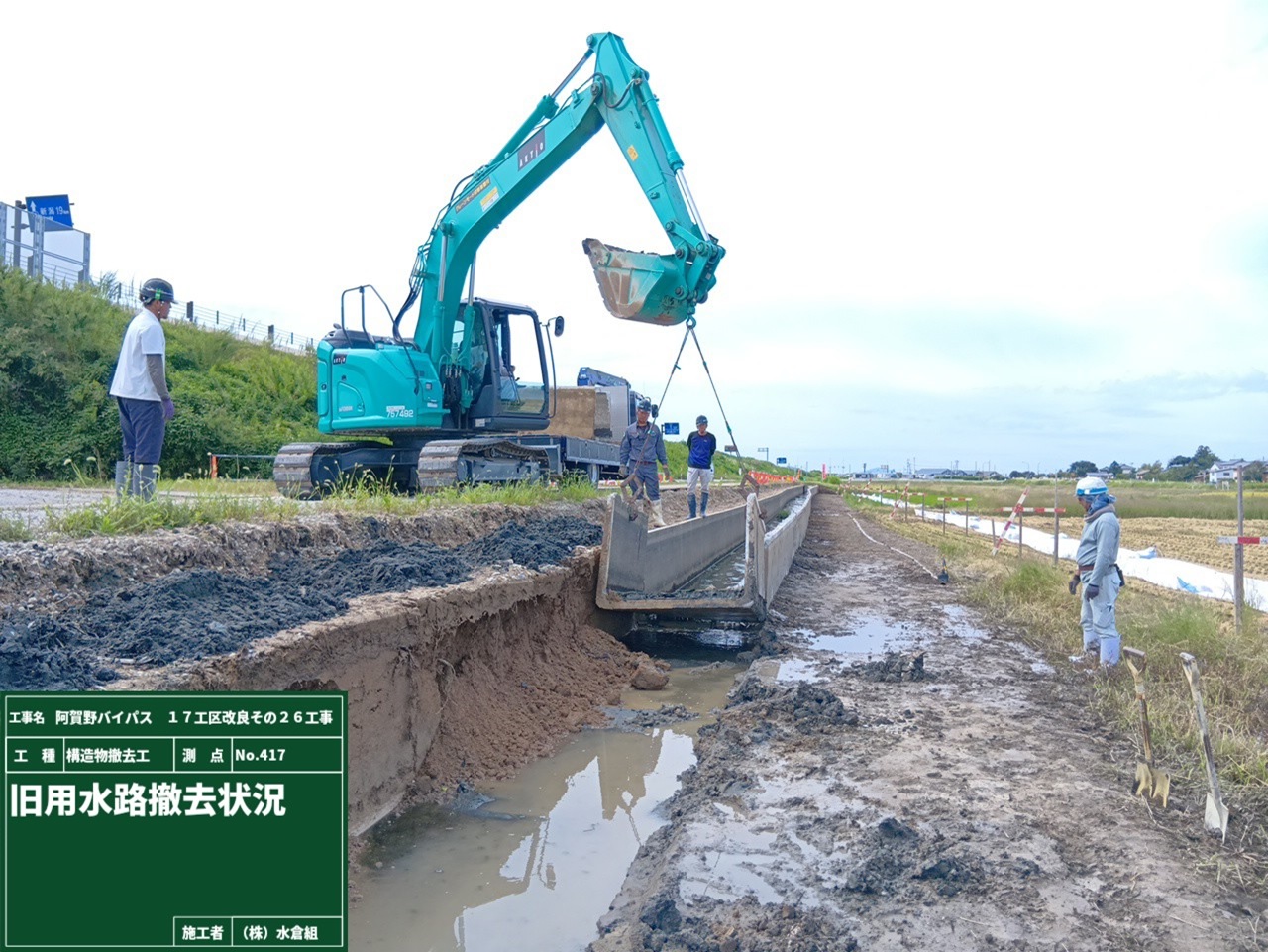 現在の用水路のとりこわしが完了して、あたらしい水路をつくります。
